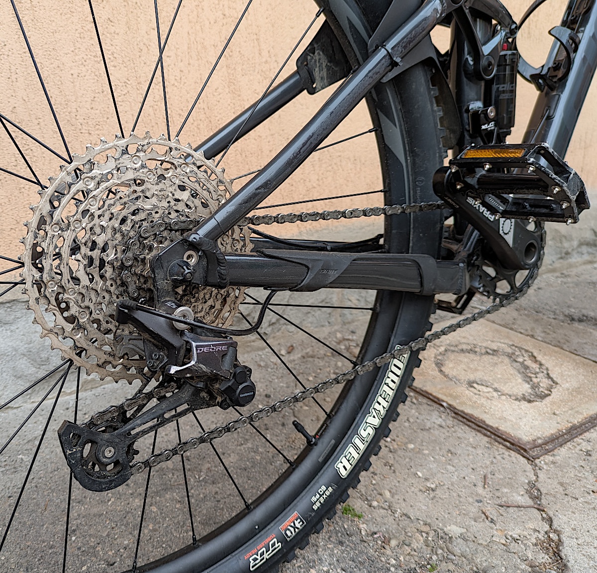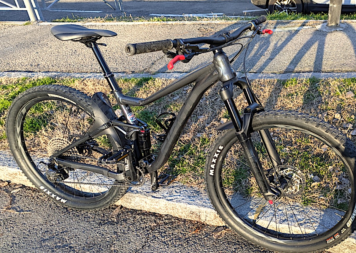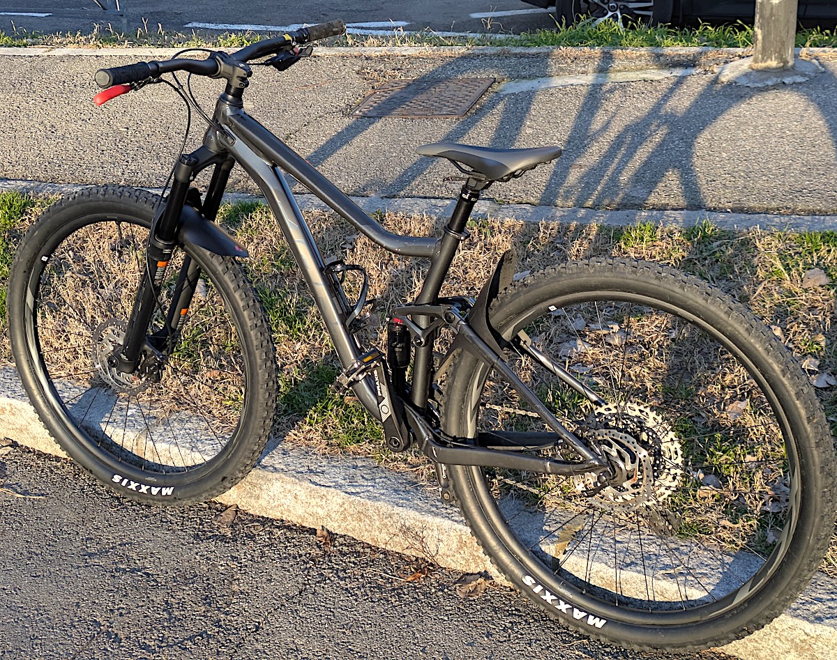 descrizione / segni particolari: Mountain bike, telaio nero / grigio scuro con la scritta GIANT, forcella nera ammortizzata, ammortizzatore posteriore, freni a disco, copertoni Maxxis, adesivo argento rosso e verde vicino all'ammortizzatore posteriore, aggiunti parafanghi neri i plastica (coprileve freni colore rosso NON presenti al momento del furto)