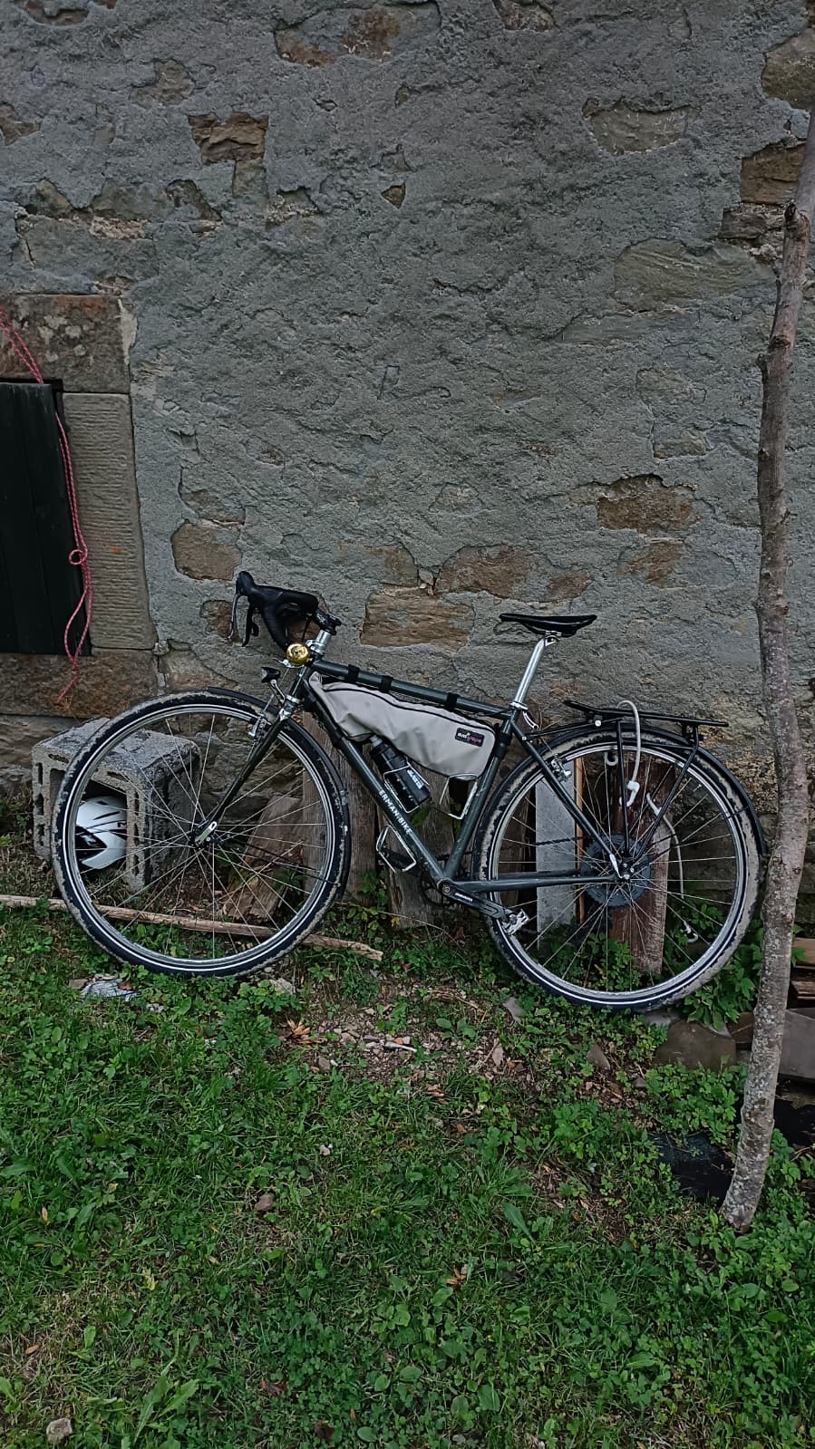 Bici con telaio artigianale Erman Bike, manubrio da corsa, portapacchi. Lucchetto e porta lucchetto legato al telaio U Locke Kriptonite