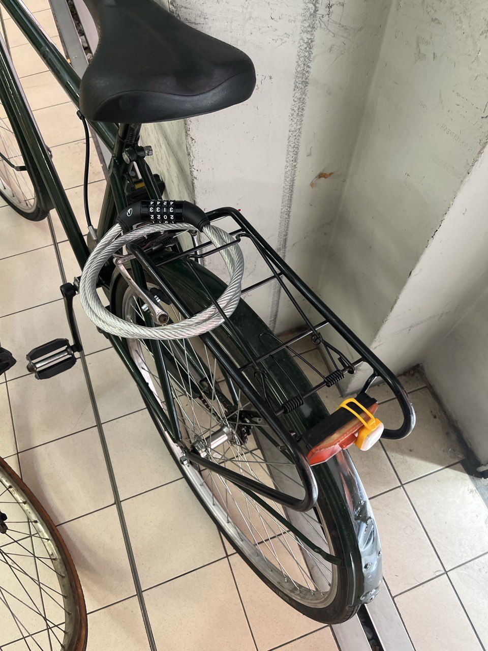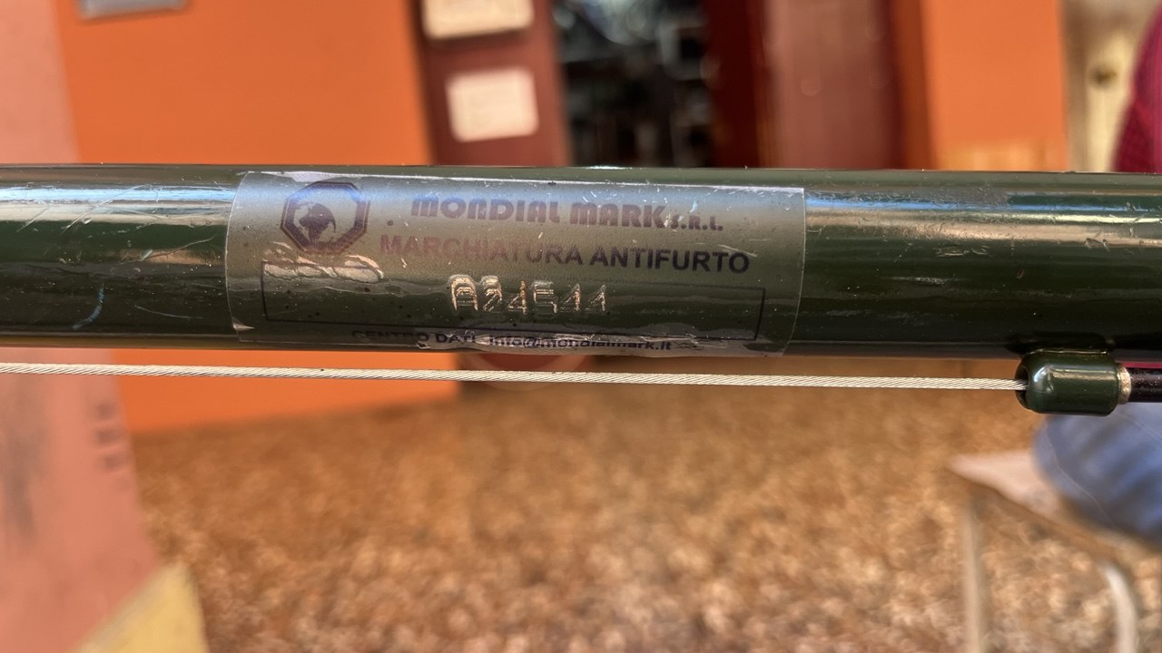 Braccialetto/archetto arancione legato nella parte posteriore della bicicletta (riconducibile all’Università Johns Hopkins)