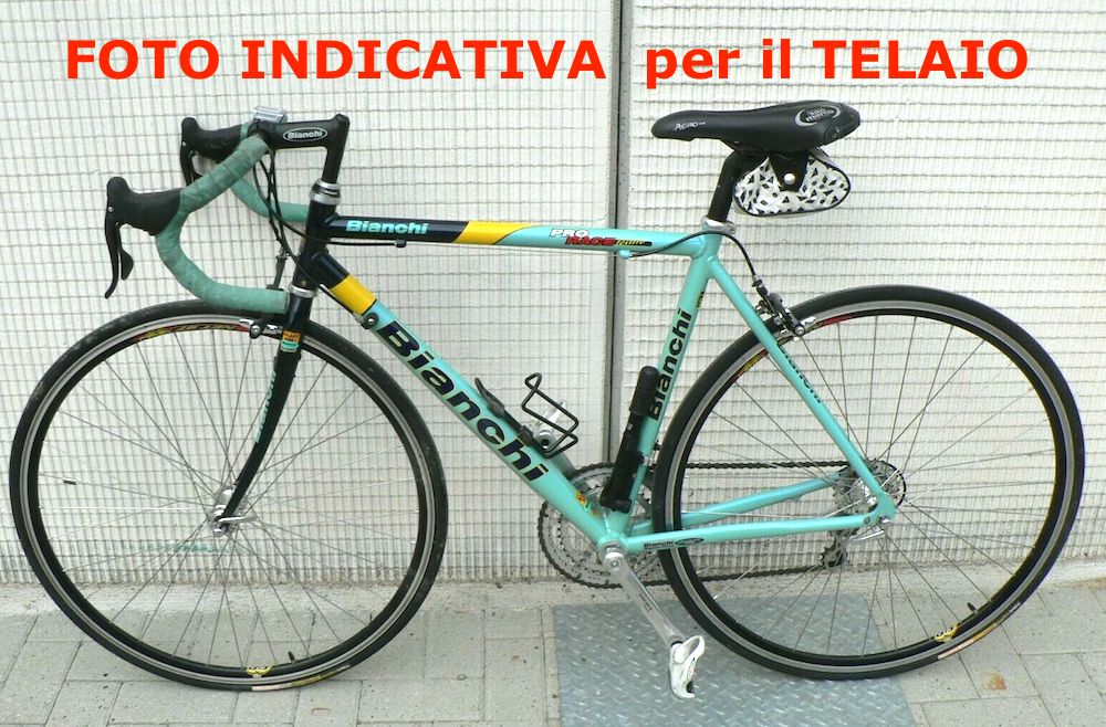 descrizione / segni particolari: Bici da corsa Bianchi anno 2008, telaio in alluminio di taglia piccola colore verde acqua classico della casa Bianchi non perfetto con diversi segni da caduta, manubrio da corsa con gomma usurata colore verde, pedali colore nero, sella verde acqua Bianchi, piccola luce LED colore bianco su manubrio, inserti in pellicola trasparente-colorata sul tubo superiore del telaio.