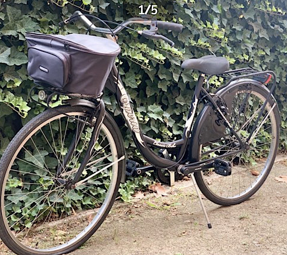 city bike da donna senza cambio, telaio nero con le scritte ESPERIA e CLASSIC BIKE in bianco, due portapacchi