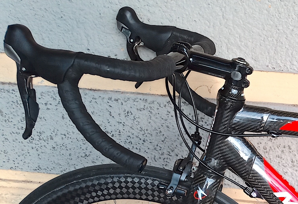 descrizione / segni particolari: Bici da corsa con telaio in carbonio colore grigio+nero con inserti rossi e la scritte MERIDA in nero, 2 portaborracce, guarnitura STRONGLIGHT PULZION, pneumatici marca TUFO, sellino nero marca SELLE ITALIA, freni neri SHIMANO ULTEGRA