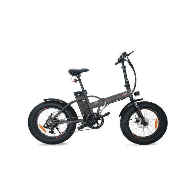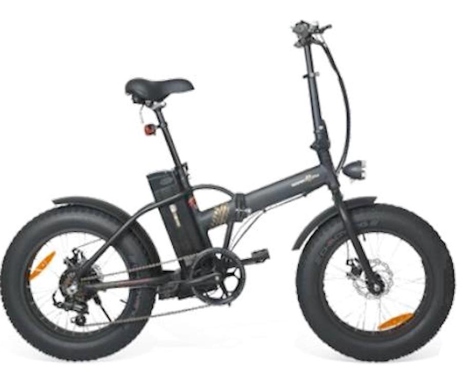 Bici pieghevole elettrica stile fat bike (ruote larghe), senza la sella originale, batteria montata che senza chiavi non si toglie.