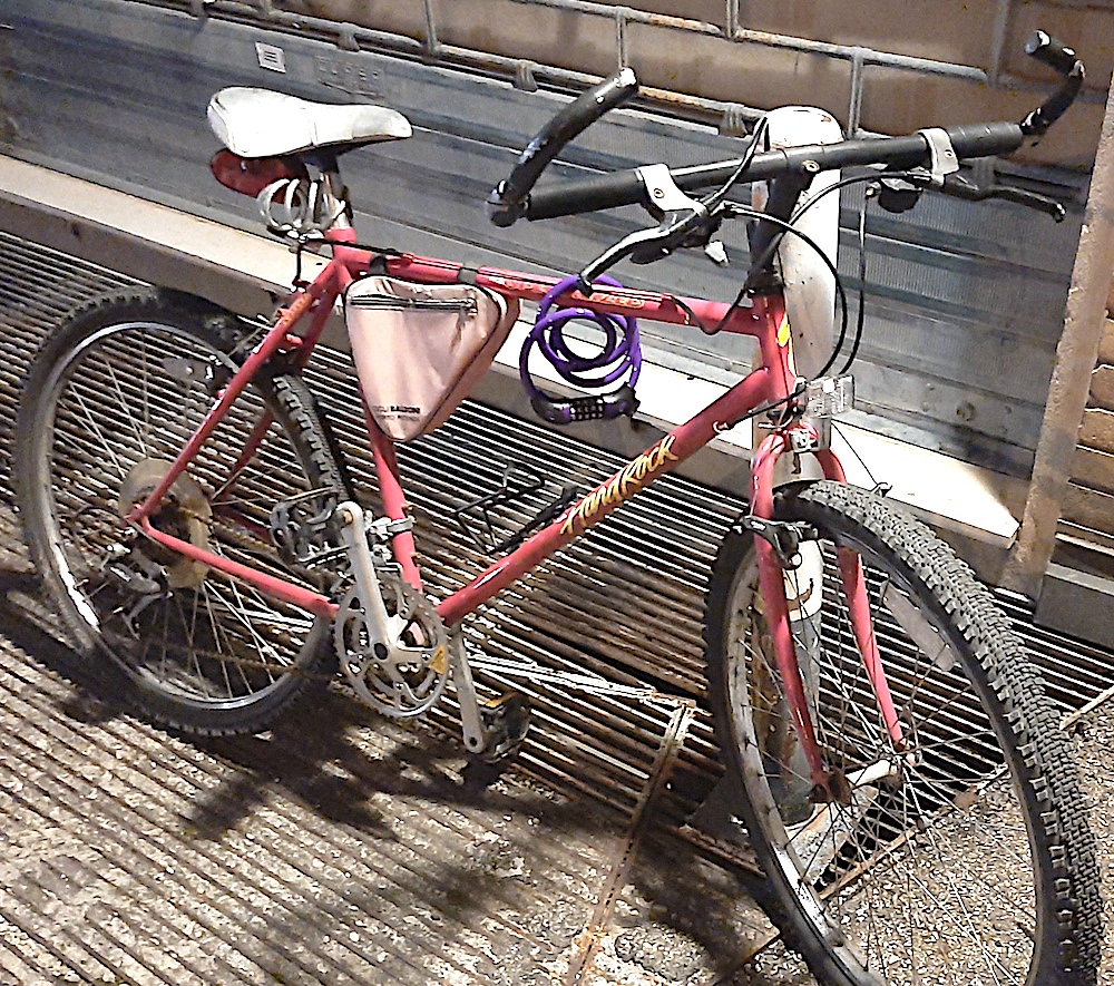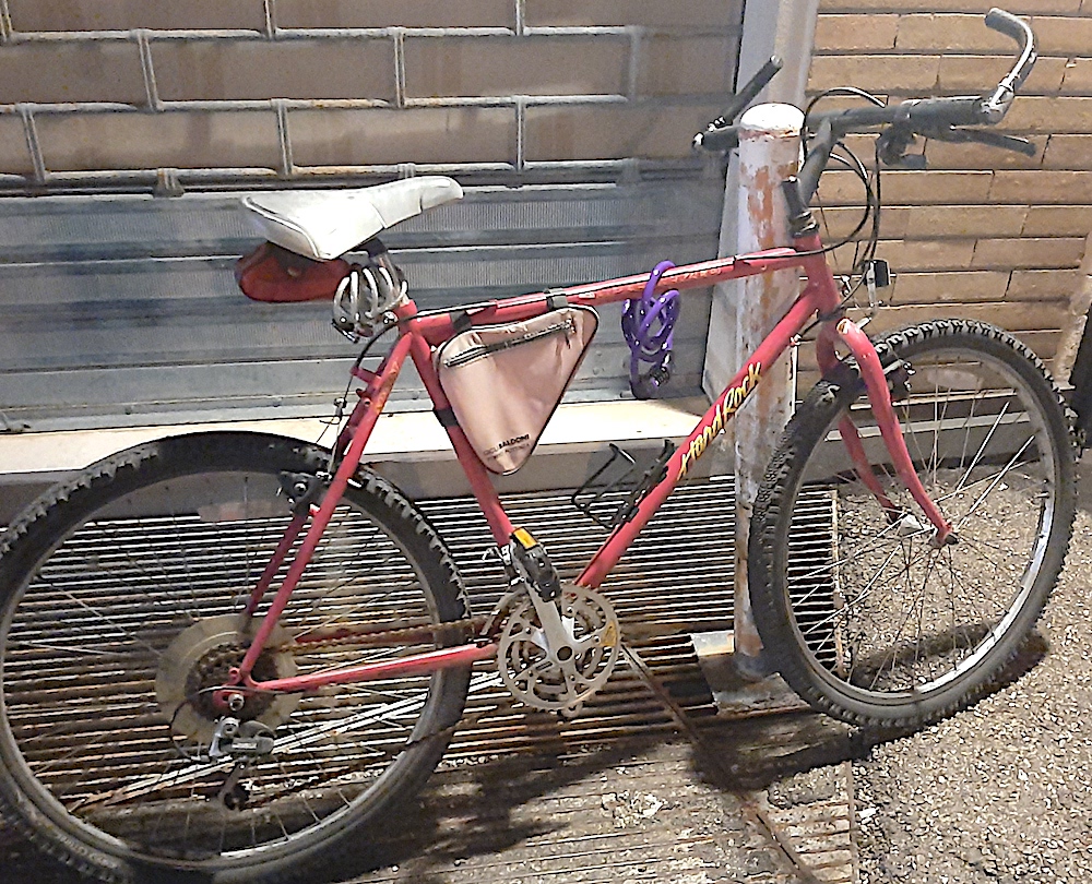 descrizione / segni particolari: Vecchia mountain bike, telaio rosa / viola con le scritte SPECIALIZED e HARDROCK, sellino bianco, manubrio dritto colore nero con le "crone", borsa rosa montata al di sotto del tubo principale (foto della bici rubata)