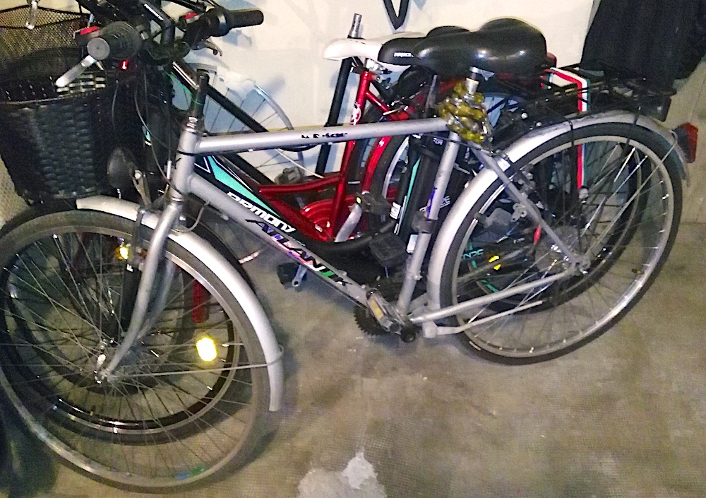 descrizione / segni particolari: city bike da uomo con doppio cambio Shimano, telaio di colore grigio-argento, parafanghi in tinta (grigio-argento), manubrio nero leggermente piegato, portapacchi posteriore a molla, bici senza copricatena, ruote 28 pollici.