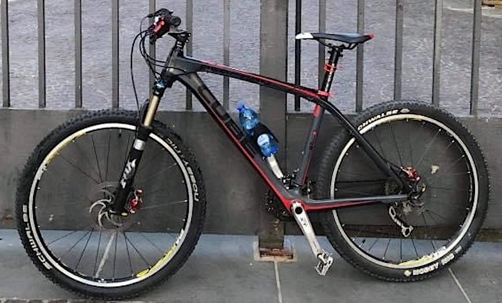 Cube mountain bike, telaio in carbonio, forcella anteriore ammortizzata, freni a disco, copertoni Schwalbe