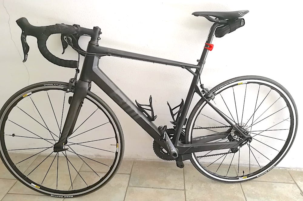 bici da corsa marca BMC, telaio tutto nero in carbonio
