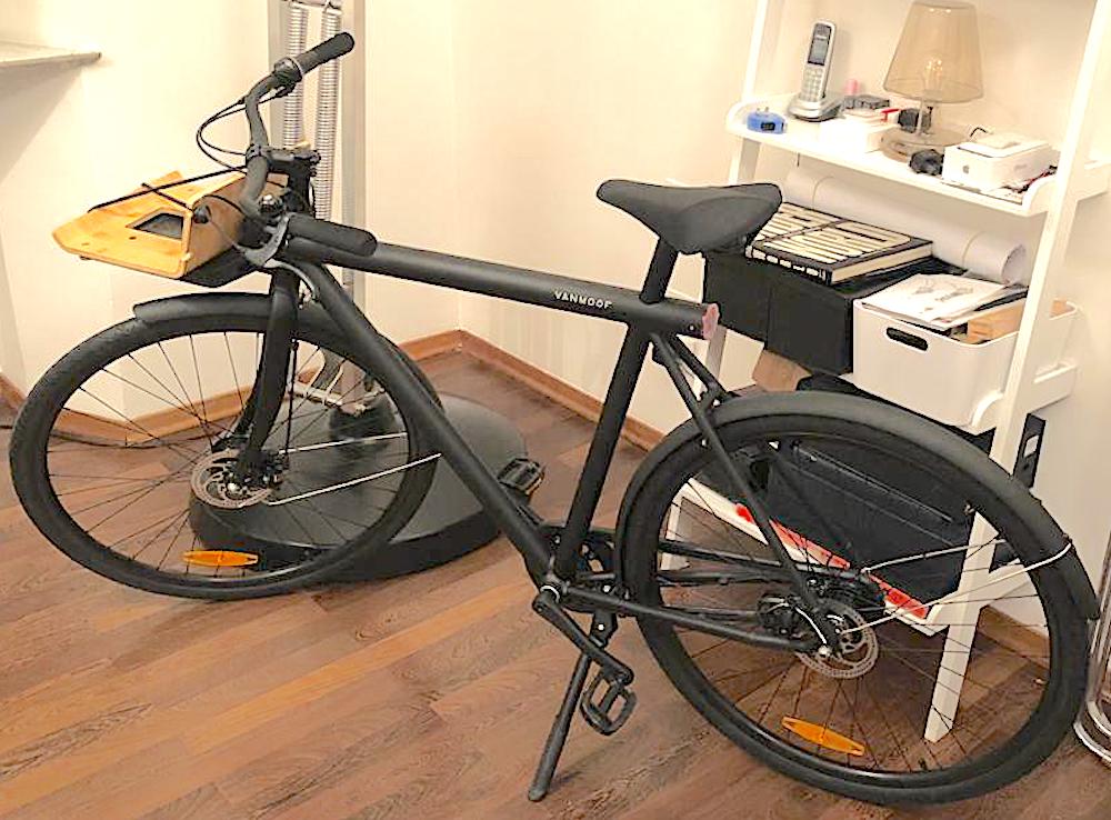 portapacchi anteriore in bamboo, segno di bruciatura di sigaretta sulla sella, freni a disco