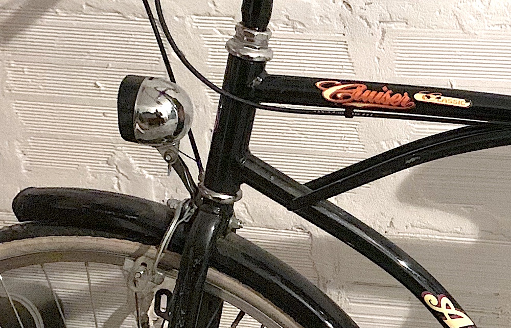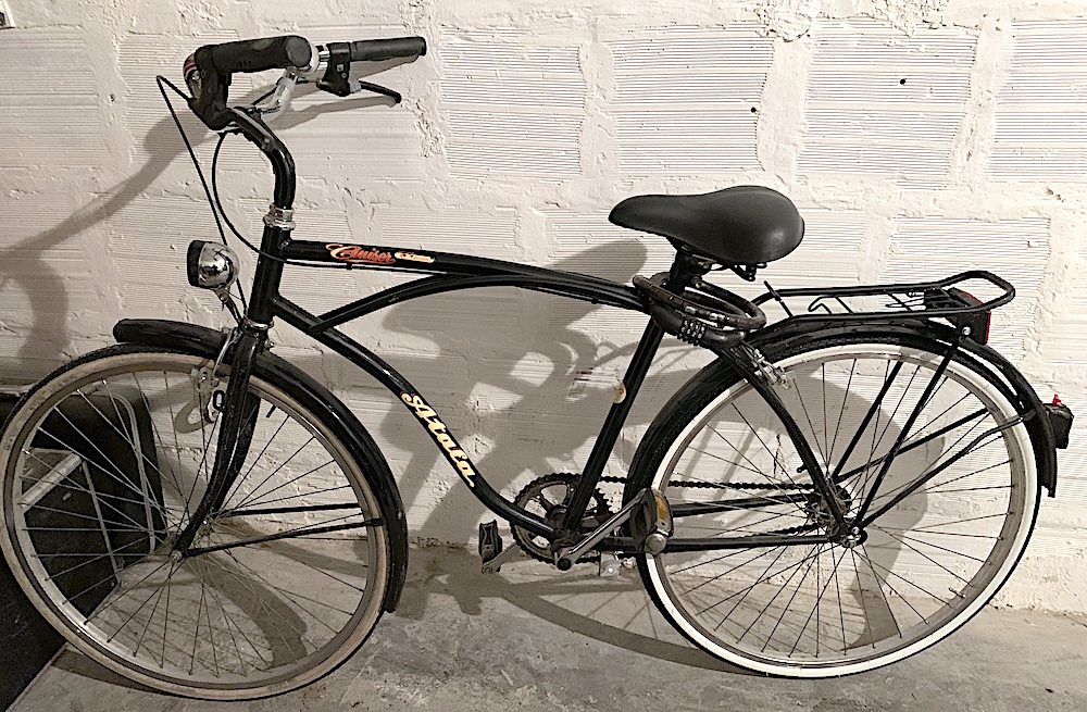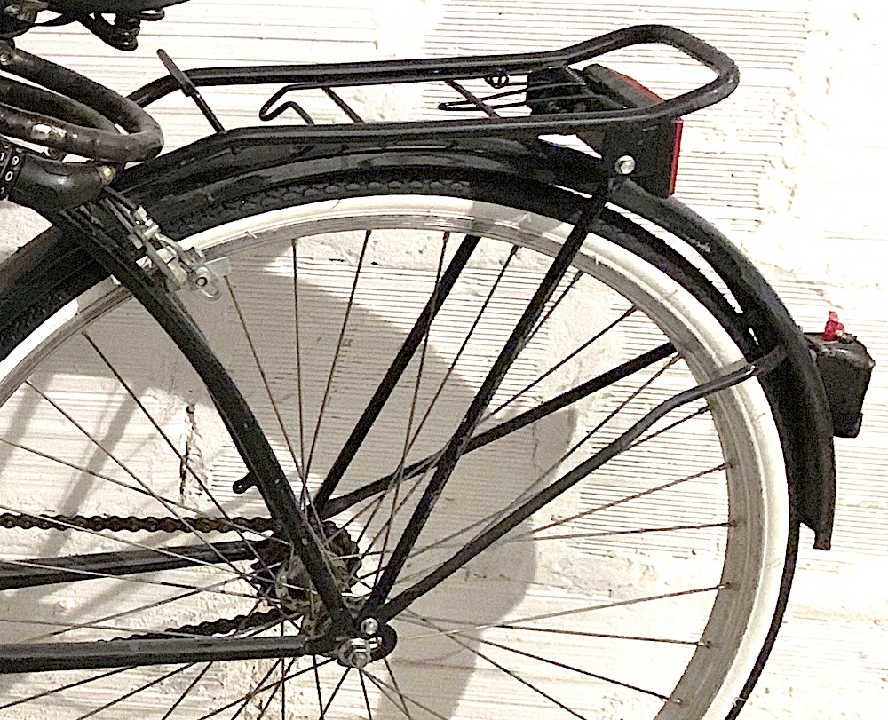 Pirtapacchi posteriore nero, fanalino posteriore rotto, carter copricatena mancante, copertone posteriore bianco e nero nuovo.
