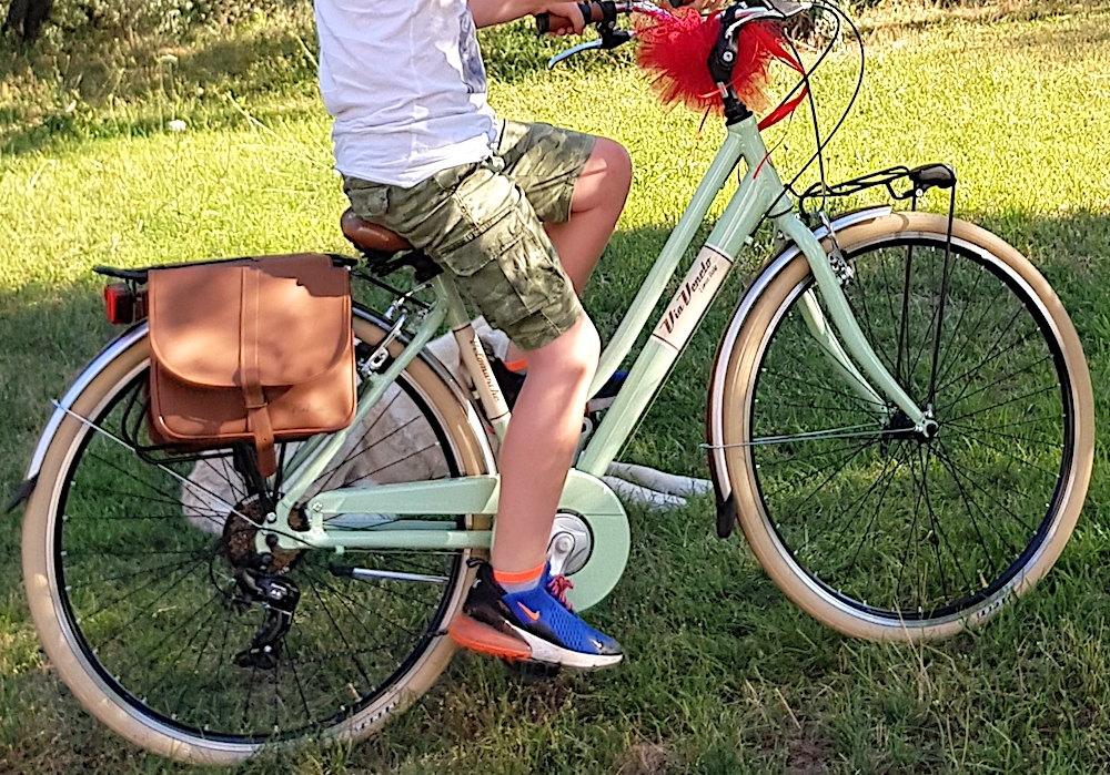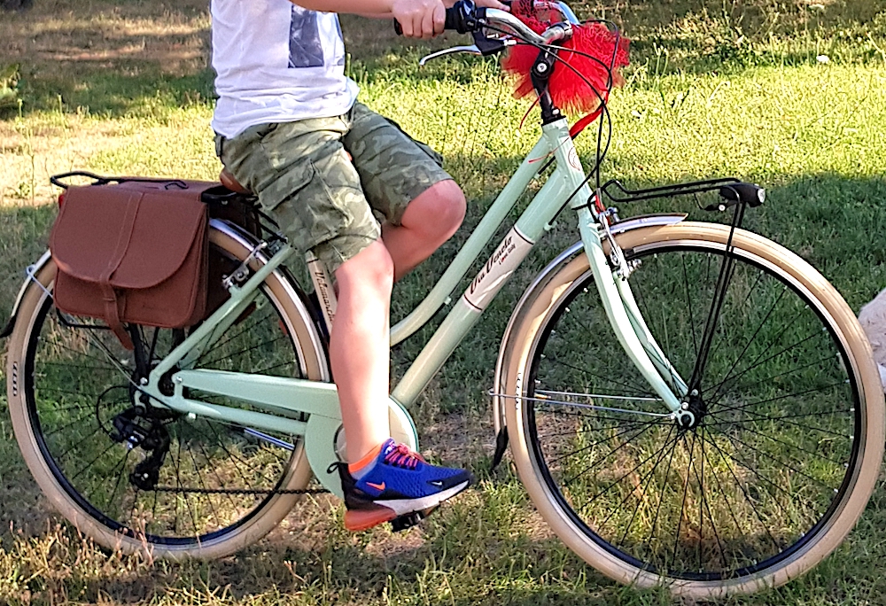descrizione / segni particolari: Al momento del furto aveva gomme abbastanza consumate, il fanale anteriore con batteria scarica, manopola dx del manubrio un po' spostata verso l'esterno, catena rossa legata sotto alla sella, ma basta sfilare il sellino per toglierla (senza cestino e borse posteriori visibili in foto)