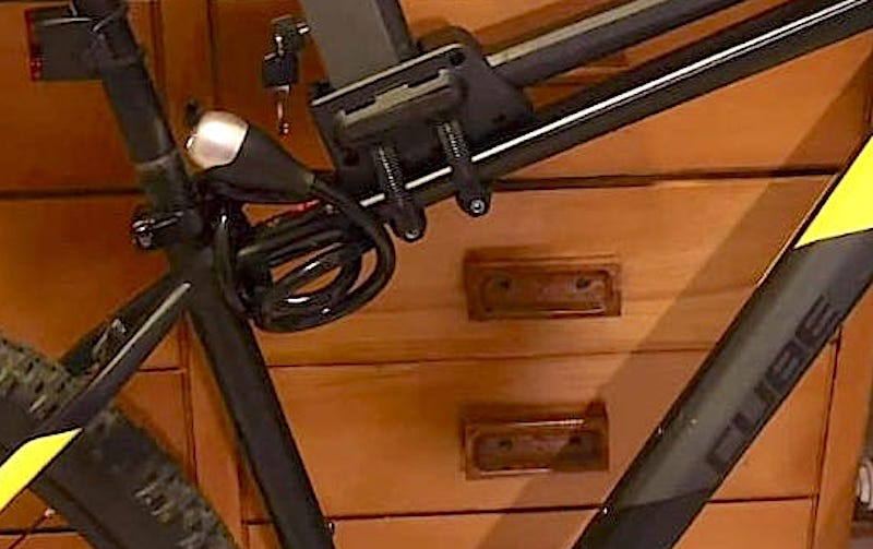 mountain bike, telaio nero opaco con inserti gialli e la scritta CUBE in nero, forcella anteriore ammortizzata, freni a disco, monocorona davanti