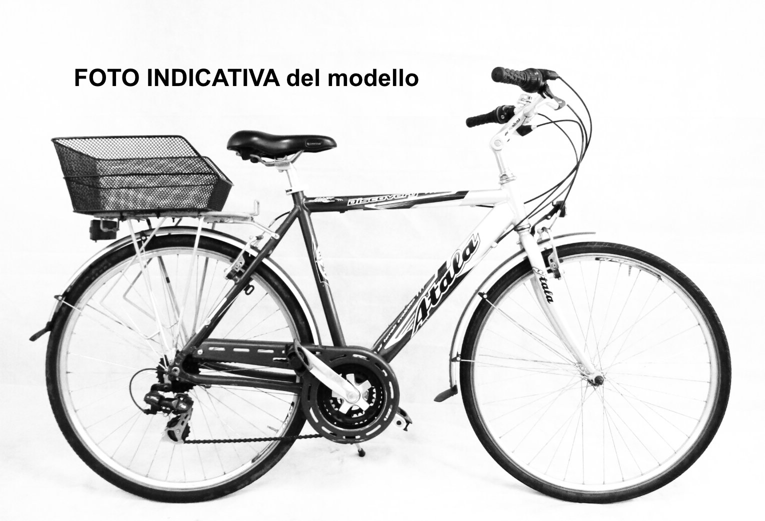 descrizione / segni particolari: Foto INDICATIVA, telaio bianco e nero con la scritta ATALA in nero, cestino posteriore rettangolare nero e anteriore ovale nero, manca fanale anteriore, segno rosso sul cannone alla base dell'attacco del manubrio e campanello sul semi manubrio sinistro