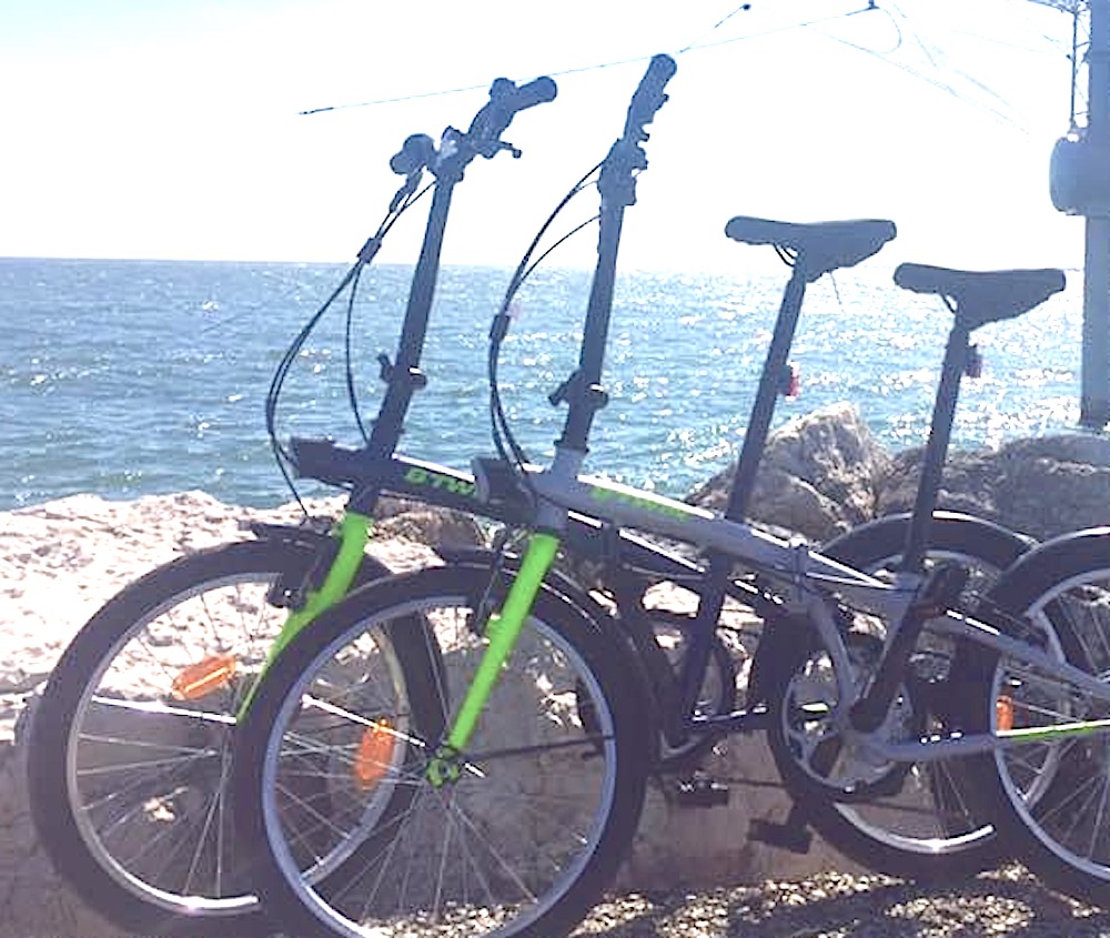 pieghevole B-Twin, telaio blu scuro, forcella giallo fluo