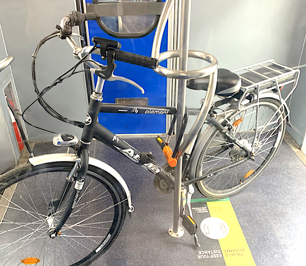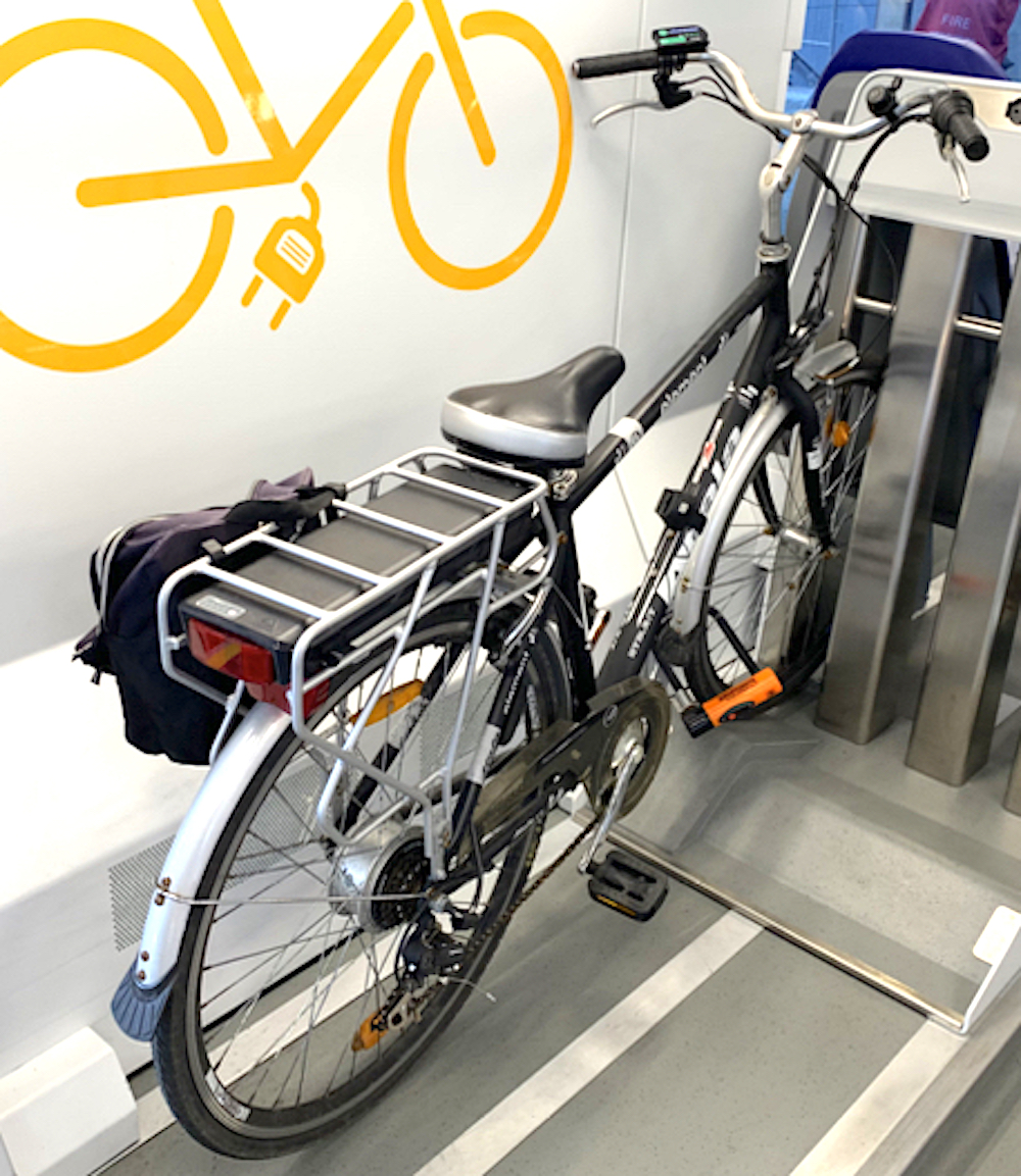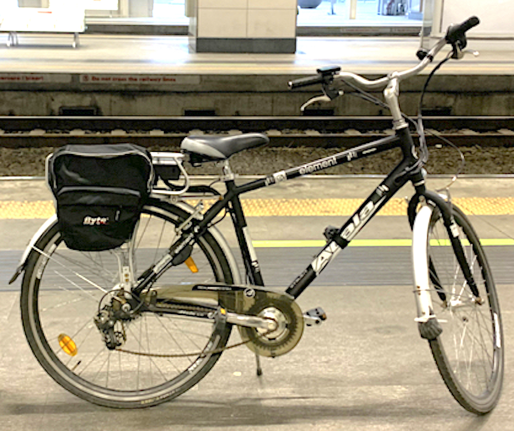 Nera, grigia, con piccoli elementi bianchi. Potrebbe avere il lucchetto ad U nero-arancio Kryptonite ancora attaccato.