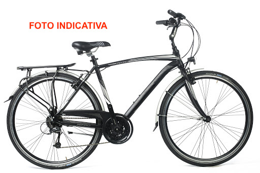 FOTO INDICATIVA, Bici da città / trekking, telaio nero da uomo , manubrio piatto e altre modifiche rispetto a modello base