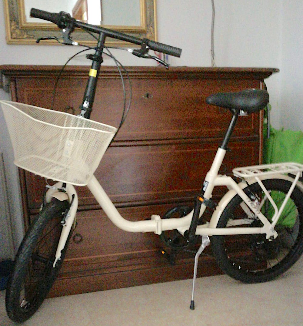 descrizione / segni particolari: bici pieghevole, telaio beige,
