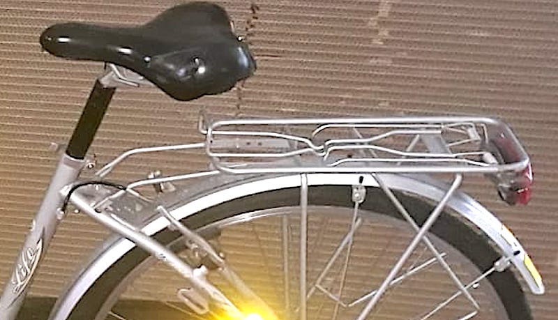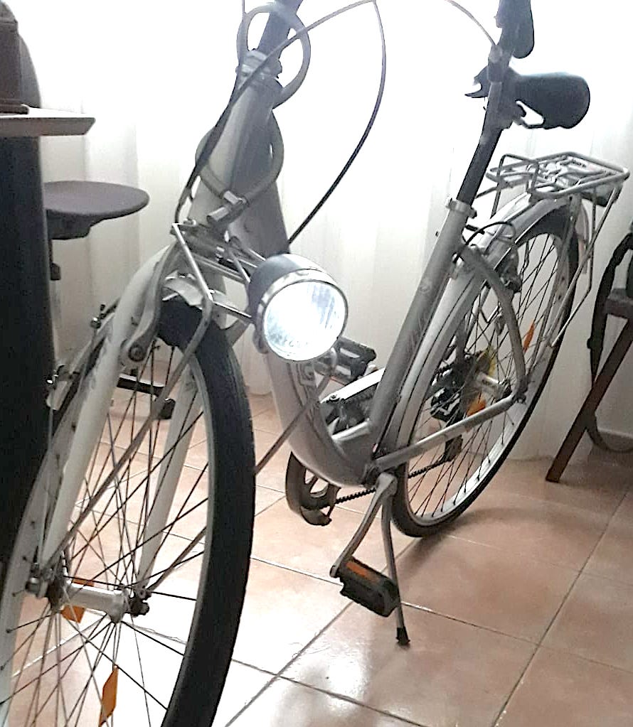 descrizione / segni particolari: City bike da donna con cambio, telaio argento con le scritte LIFE in bianco, due portapacchi argento, attacco e manubrio neri, copricatena nero, tubo reggisella nero, adesivo sul tubo principale che dovrebbe esserci la scritta Giulianova con un disegno / stemma