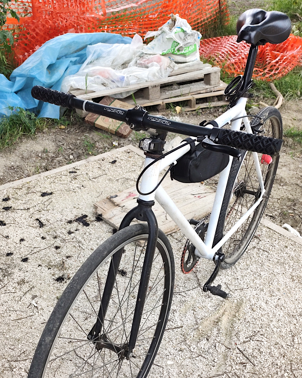 descrizione / segni particolari: Bici sigle speed da uomo, telaio bianco con forcella nera, scritta sul tubo superiore Dolce e Gabbana di colore Azzurra, freno solo posteriore di colore nero con leva a SX (non standard), cerchi e mozzi neri, manubrio nero marca NSR, diversi adesivi del negozio Pull & Bear, adesivo Monster