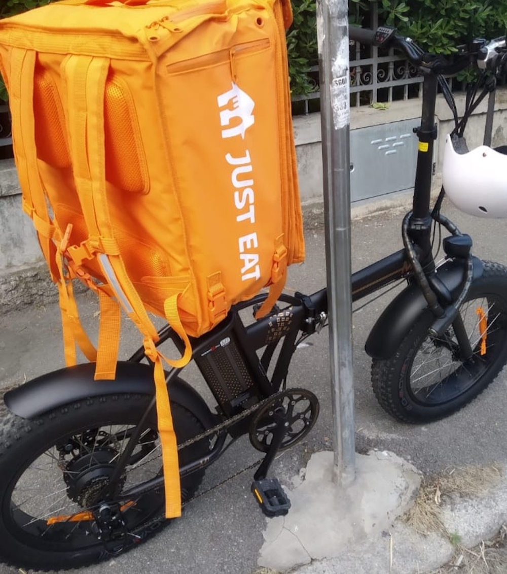 descrizione / segni particolari: bici pieghevole elettrica, telaio nero, ruote grosse stile fat bike, catena chiusa intorno al manubrio, bici graffiata e aveva perso del colore in alcuni punti uno di questi è la punta delle leve dei freni, batteria era un'po graffiata