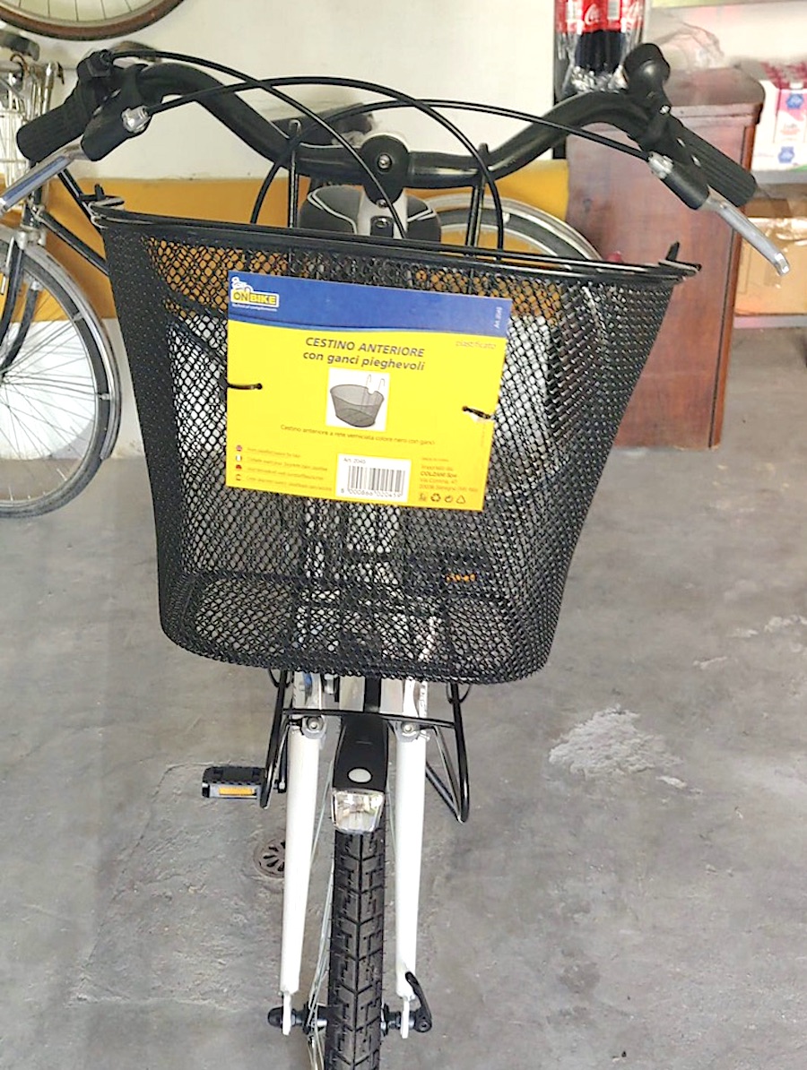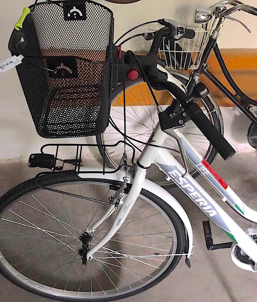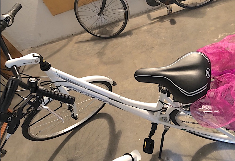 descrizione / segni particolari: City bike da donna con cambio, telaio bianco con scritte argento e dettagli verde bandiera, cestino anteriore di colore nero, catadiottri su ruota posteriore, sellino foam, rubata senza ruota anteriore, telaio punzonato con codice fiscale del proprietario e adesivo rosso di marchiatura del comune di Padova.