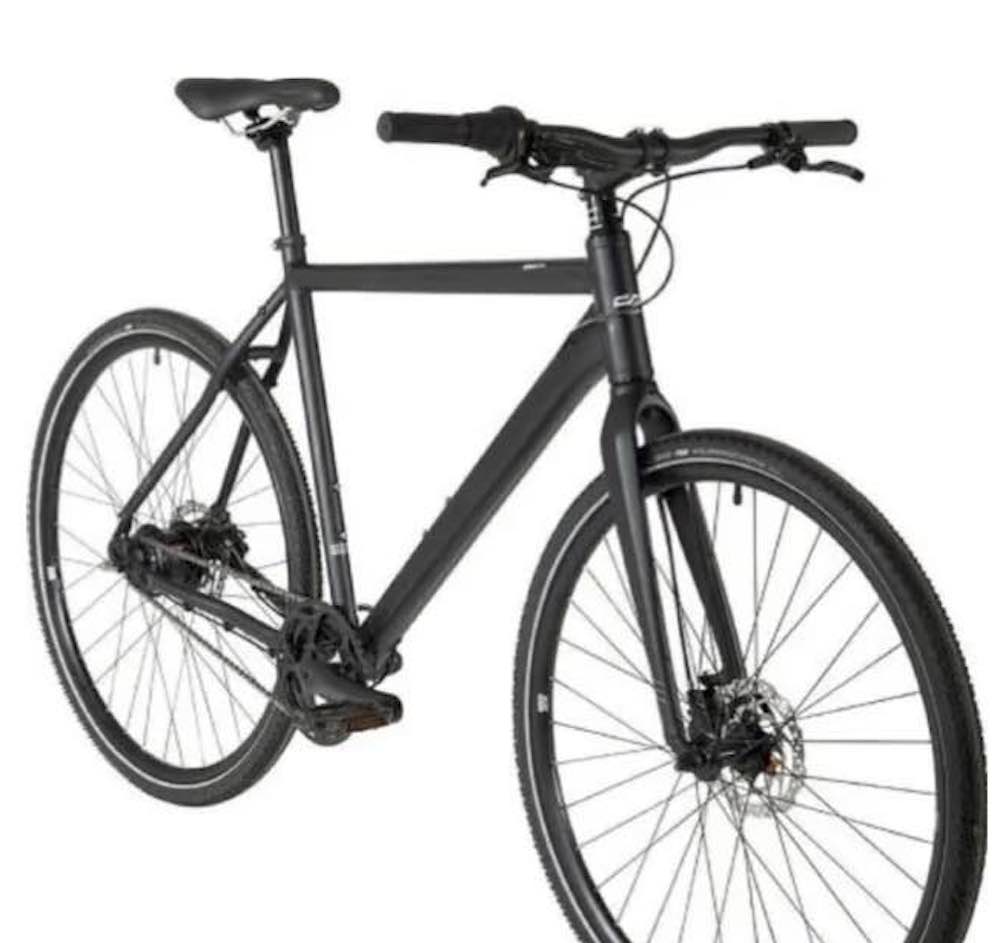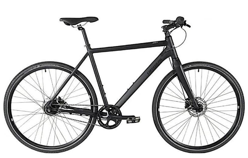 descrizione / segni particolari: Bici city bike / trekking, telaio nero con la scritte CHECKER PIG in nero, ruote da 28", freni a disco, cambio Shimano nel mozzo posteriore, motore elettrico nero al posto del movimento centrale, porta oggetti posteriore con una batteria nera, fanali davanti e posteriore, sul lato sinistro del manubrio un controller grigio per la gestione del motore