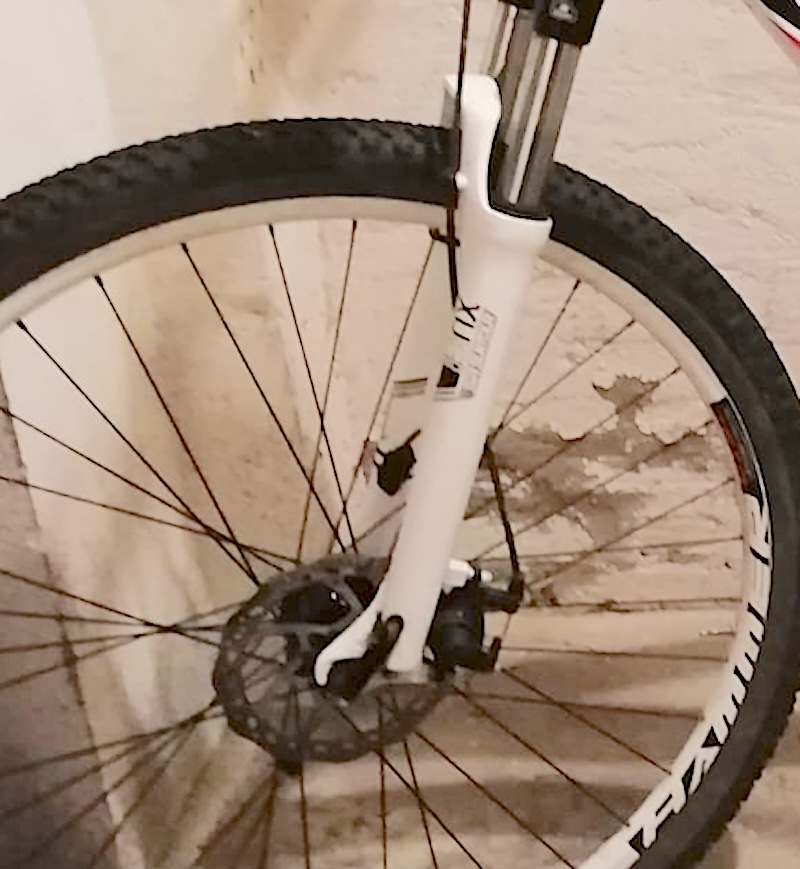 descrizione / segni particolari: Mountain bike, telaio bianca con la scritta XMR in nero e rosso e ARGON in nero, pochi segni di usura, forcella bianca ammortizzata, freni a disco, cerchi colore bianco, ruota da 29", portatelefono Decathlon nero sul manubrio, contachilometri, portaborraccia bianca
