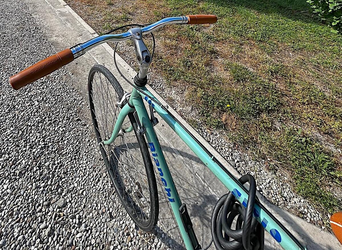descrizione / segni particolari: Bianchi da corsa d'epoca, telaio verde-acqua con le scritte Bianchi Sirio 605 in blu
