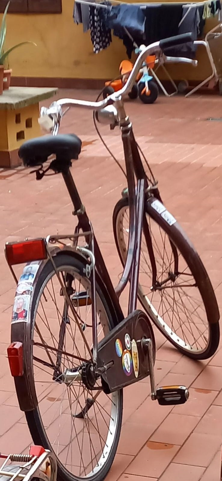 bordeaux/amaranto diversi adesivi di calciatori e di bar di bologna sulla canna e sul copricatena