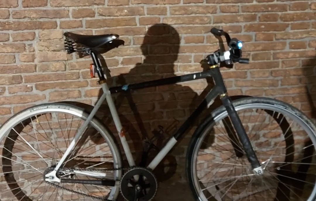 Bici con solo freno posteriore contropedale,ruote alluminio mozzi shimano, sella brooks usuratissima e con molle, forcella ant artigianale dritta