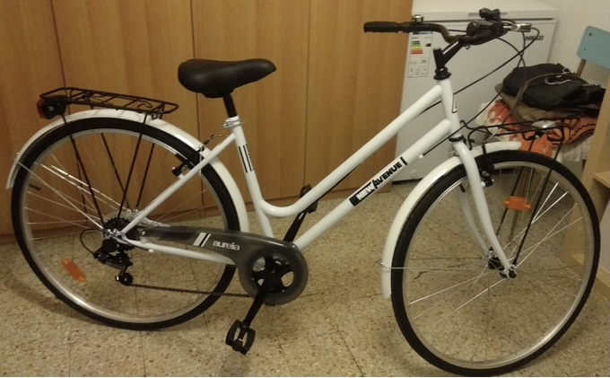 Cestino nero davanti e seggiolino bimbo grigio nel retro