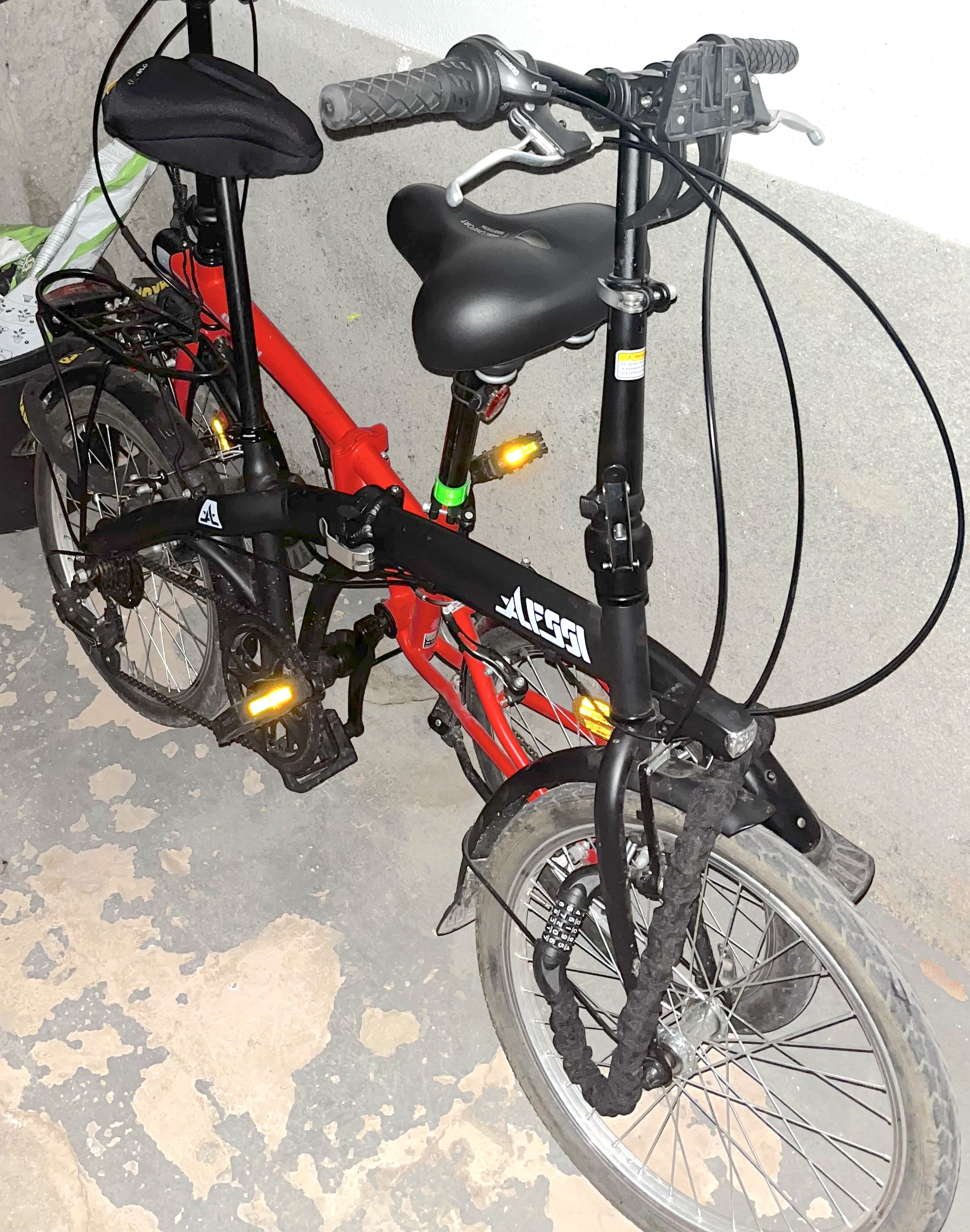 Bicicletta folding Alessi, telaio in alluminio 20. Aveva anche cestino nero rimuovibile e luci anteriori e posteriori aggiuntive di forma rettangolare