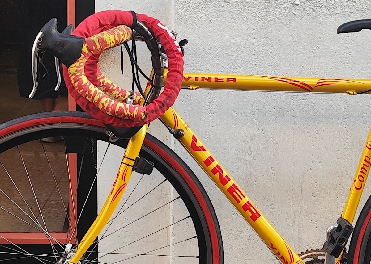 Tubi in acciaio Columbus, nastro manubrio mimetico giallo e rosso cambio e freni Campagnolo