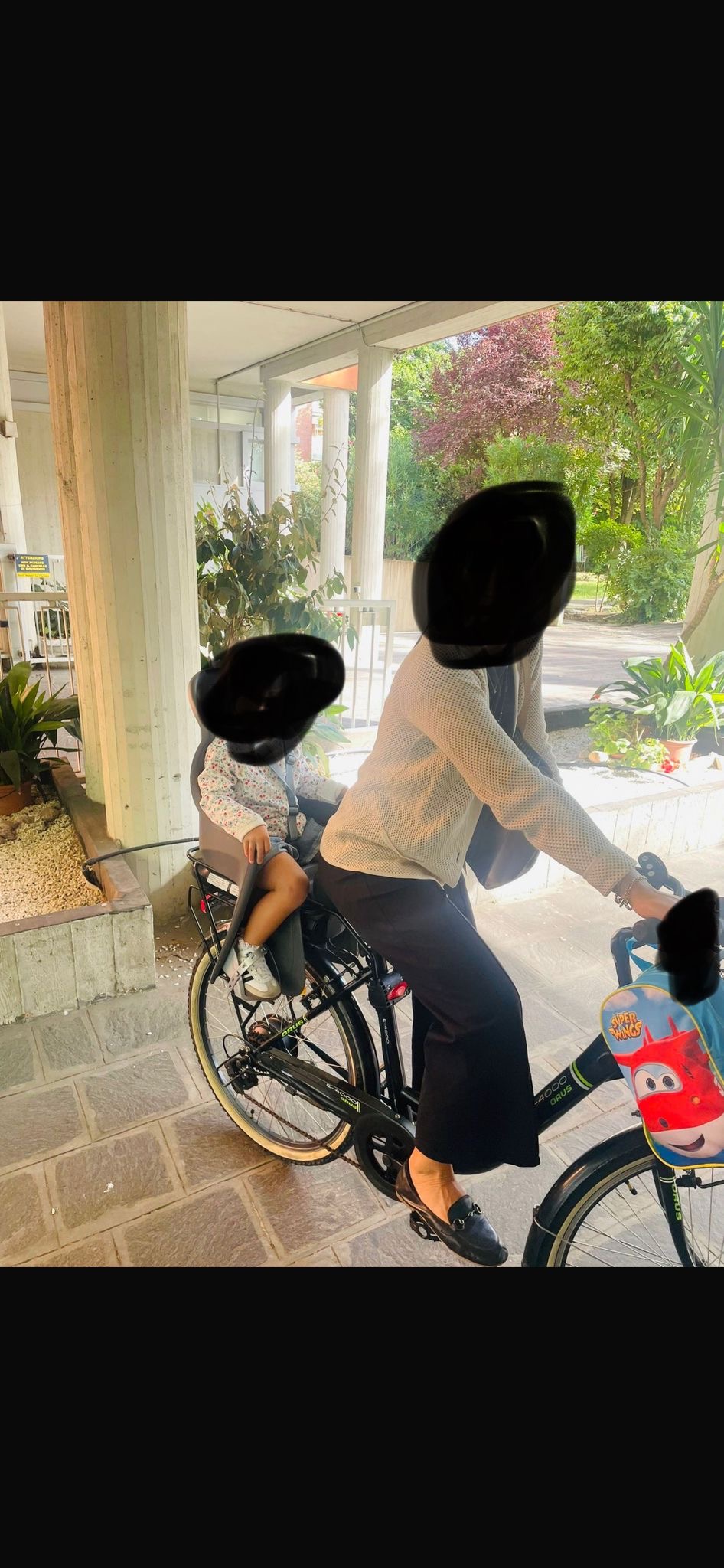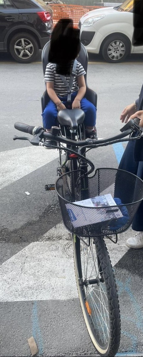Seggiolino bambina; copri catena rotto; cestino nero