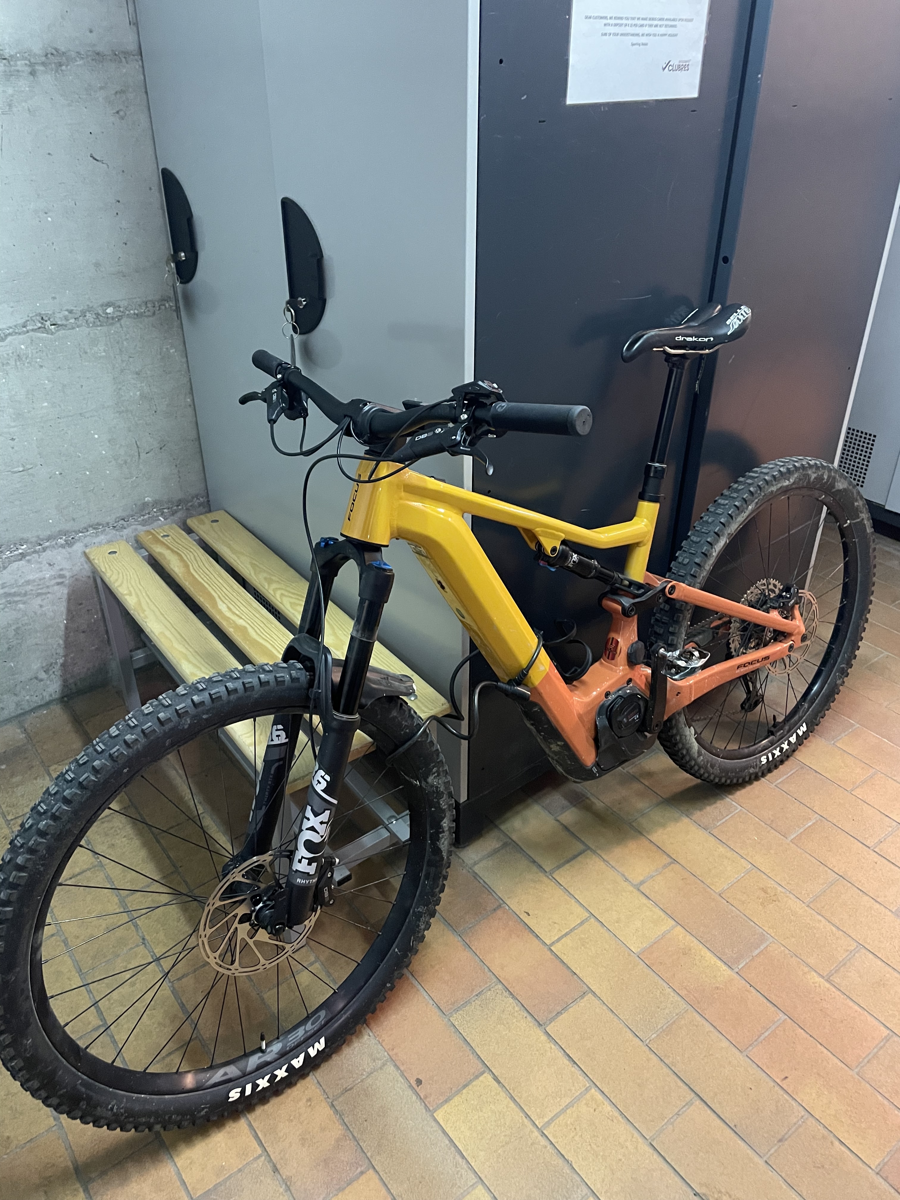 Mountain Bike Elettrica seminuova, nessun segno di usura, sella SMP, piccolo adesivo tondo Focus sul piantone reggisella, cicalino elettrico sul manubrio parte destra.