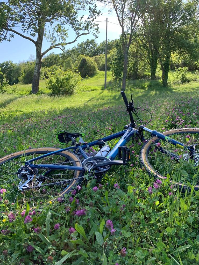 ha un porta-borraccia (con borraccia bianca in plastica).